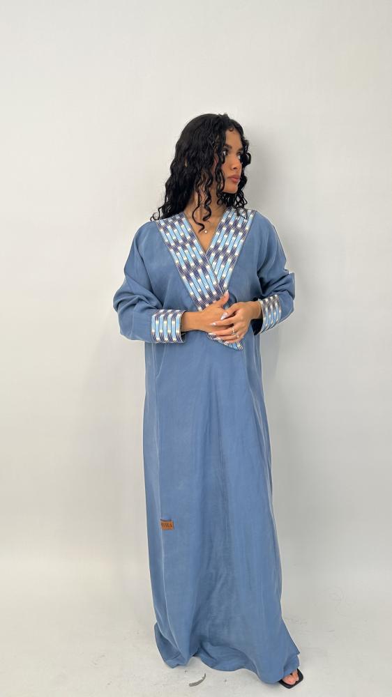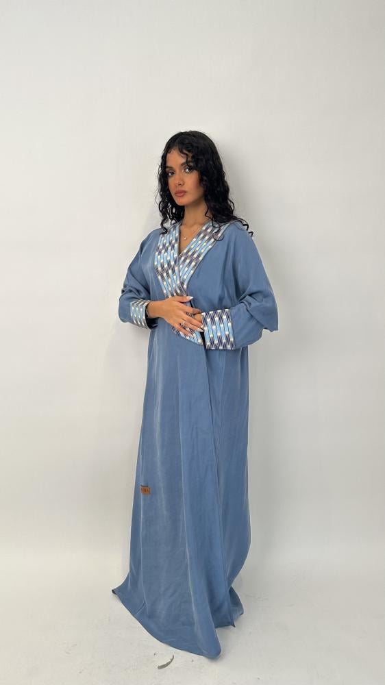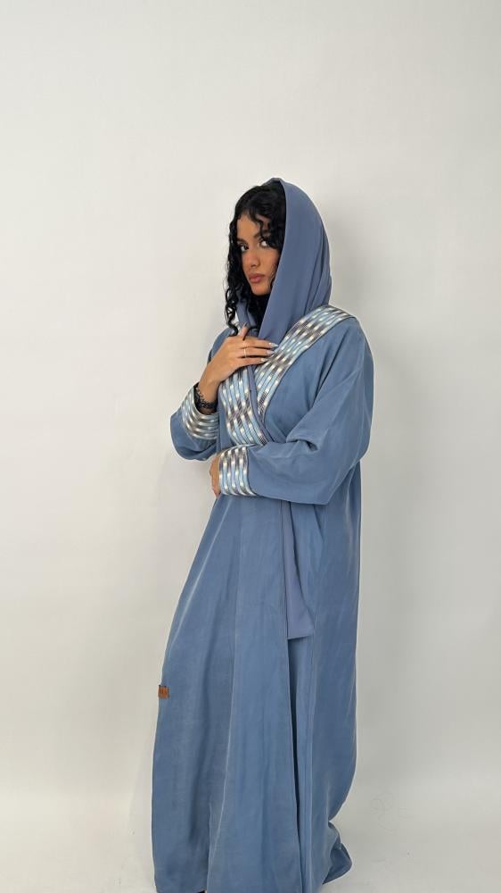 عبايات حرير مغسول مع كلفة تطريز تقدم لكِ إطلالة فاخرة وأنيقة. القماش الناعم والمغسول يعكس جمالًا طبيعيًا مع لمسة من الفخامة. الطرحة الزرقاء السادة تضيف لمسة من التميز، بينما اللون الأزرق المنقوش يضفي إطلالة عصرية وفريدة من نوعها.