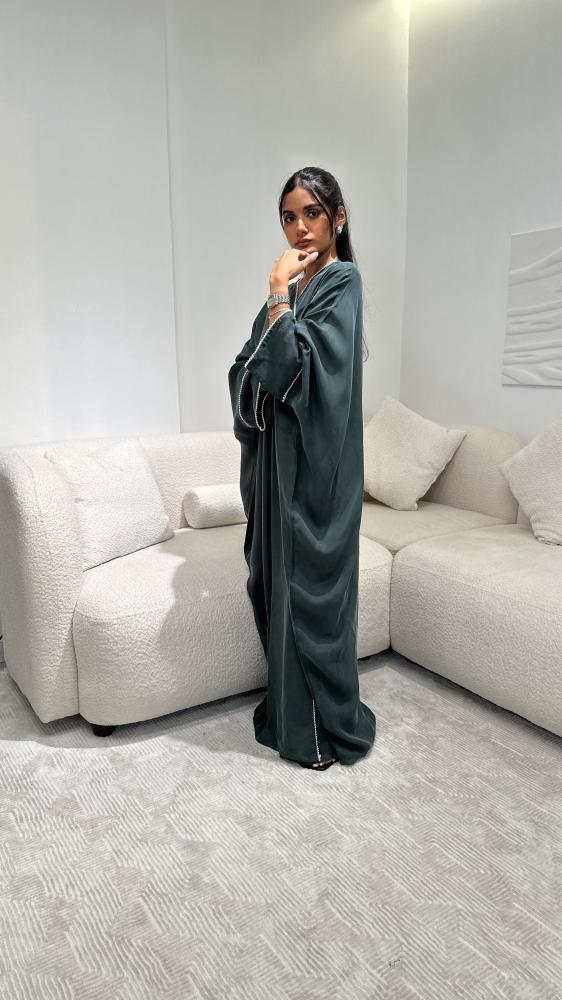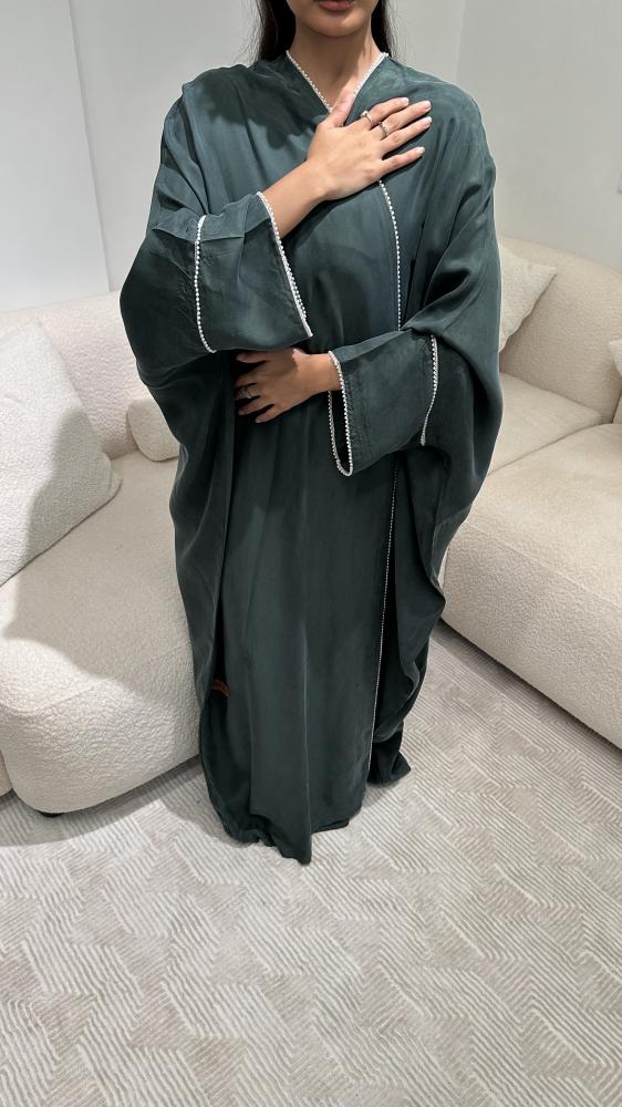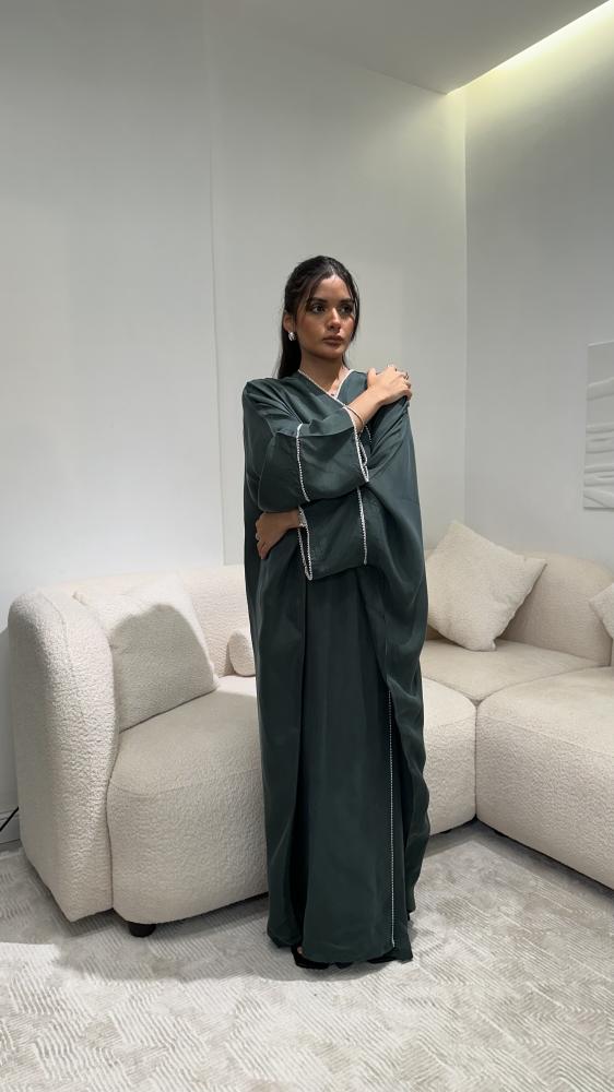 مواصفات عباية حرير مغسول أخضر ببشت فخم مع تفاصيل لولو