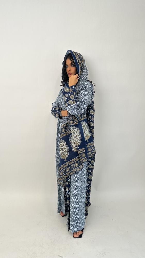 عبايات منقوشة قطن هندي بتصميم أنيق يوفر لكِ مزيجًا من الراحة والجمال. القماش القطني الهندي الناعم يضمن لكِ راحة طوال اليوم، بينما الطرحة المنقوشة بنفس تصميم العباية تضيف لمسة من التناغم والجمال. اللون الكحلي المنقوش بالأبيض يضفي إطلالة هادئة وعصرية.